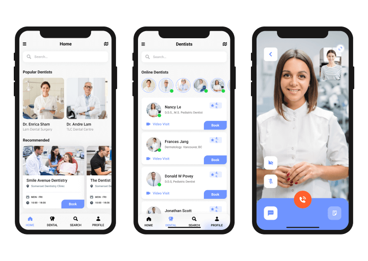 A healthcare app development company develops a Telehealth app to make life easy for patients to find a doctor for an appointment. The patient can select a preferred doctor and time slot to book an in-clinic or consultation through Video call, audio call, chat.